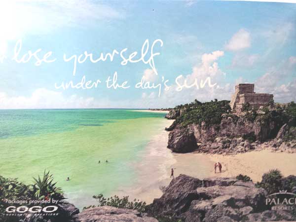 In these moments I use visual cues to help direct my focus. I grabbed old magazines, cut out things that represented the life I wanted, and pinned them to my bulletin board. Smiling people represented happiness. Cool cabin in the woods represented my dream of an “off the grid” home. The bulletin board was in my bedroom. It was the first thing I saw in the morning and the last thing I saw at night. Located in the lower left quadrant of the board was an advertisement for a vacation destination, a serene beach, turquoise waters, and sunshine (see photo above). I wanted to go on a vacation every year, relaxing on a beach — somewhere.